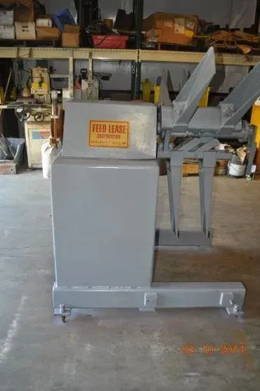 Used FEED LEASE R-46M-12 Uncoiler, capable of handling 6,000 lbs and 12" width materials. Ideal for industries requiring efficient material handling.